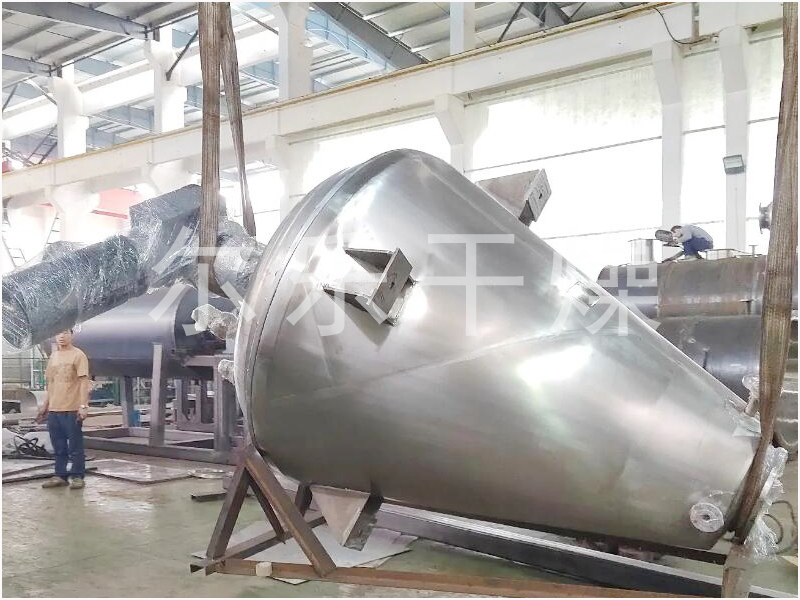 內加熱螺帶錐形真空干燥機是一種利用螺帶將物料旋轉提升及圓錐夾套、空心螺帶內同時通入傳熱介質(如熱水、導熱油、蒸汽等),使加熱后物料從四周提升并從中間下落,快速不斷的循環(huán)翻轉,并通過筒體內抽真空將水汽及時帶走, 使物料在短時間內達到干燥和混合目的。與傳統(tǒng)的立式混合機相比,筒體內無任何傳動機構,從根本上杜絕因潤滑油泄漏而導致物料污染,運行可靠穩(wěn)定,特別適宜衛(wèi)生要求高的粉料、顆?;旌?;同時也適用于粘性流體或稠狀、濕狀為主物料的攪拌混合;與其它臥式干燥機相比,具有出料方便,可以100%完全出料,操作、維修方便。它的干燥效率是同等規(guī)格“雙錐回轉真空干燥機”3-5倍。