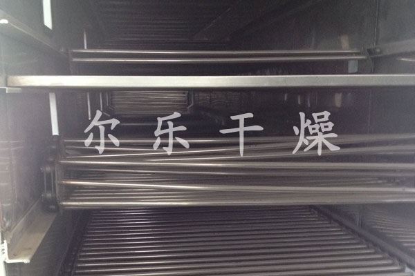 干燥機(jī)工作時(shí),冷空氣通過熱交換器進(jìn)行加熱,采用科學(xué)合理循環(huán)方式,使熱空氣穿流通過床面上的被干燥物料進(jìn)行均勻的熱質(zhì)交換,機(jī)體各單元內(nèi)熱氣流在循環(huán)風(fēng)機(jī)的作用下進(jìn)行熱風(fēng)循環(huán),后排出低溫高濕度的空氣,平穩(wěn)地完成整個(gè)干燥過程。
