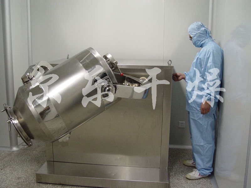 結構:該機由機座、傳動系統(tǒng)、電器控制系統(tǒng)、多向運動機構、混合筒等部件組成。與物料直接接觸的混合筒采用優(yōu)質(zhì)不銹鋼材料制造,桶體內(nèi)外壁均經(jīng)鏡面拋光。