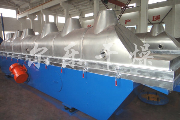 物料自進(jìn)料口進(jìn)入機內(nèi), 在振動力作用下, 物料沿水平方向拋擲向前連續(xù)運動,熱風(fēng)向上穿過流化床同濕料換熱后, 濕空氣經(jīng)旋風(fēng)分離器除塵后由排風(fēng)口排出, 干燥物料由排料口排出。
